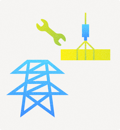 電気の通り道となる送電線(鉄塔と電線)の建設を行うのがラインマンの役割です。施工管理者の指示のもと、計画や施工図の通りに鉄塔の建設や電線の敷設などを行います。専門的な知識と技術がなければ工事は成り立たず、北海道の電気を最前線で守る重要な役割を担っています。地上から数十メートルの高所で、特別高圧電気を扱うため、チームワークと現場経験が実務に直結する専門的なポジションです。