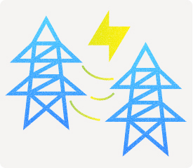 完成した鉄塔間に電線を張る作業を、架線(がせん)工事といいます。組み立てが完成すると、3~5km程度の区間を1区間として、細いロープから太いワイヤロープ、そして電線へと引き替えます。
