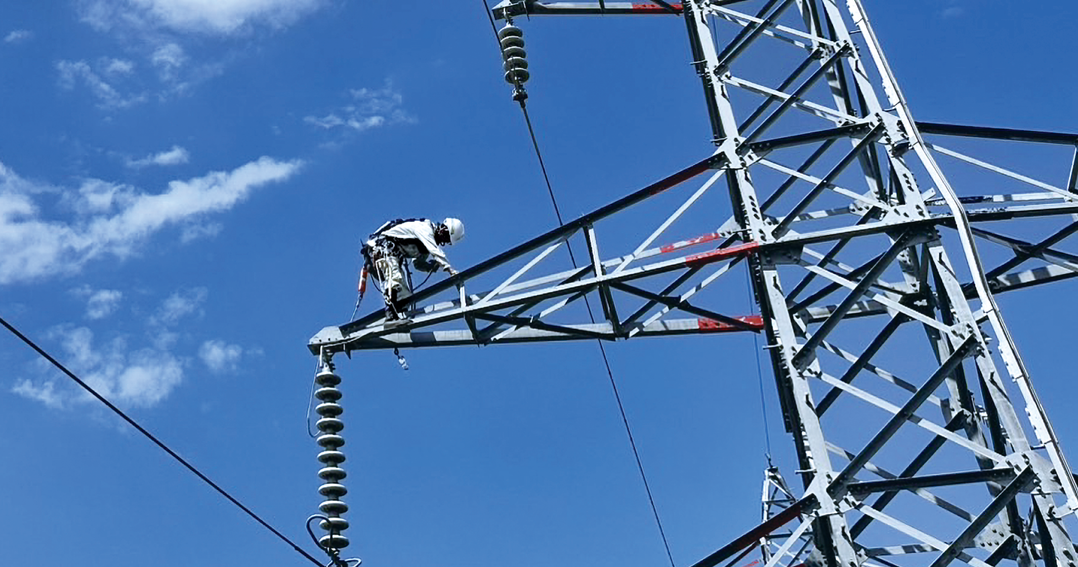 最後に決められた張力で電気を絶縁する「がいし装置」に取り付け、電気が通る道が完成します。